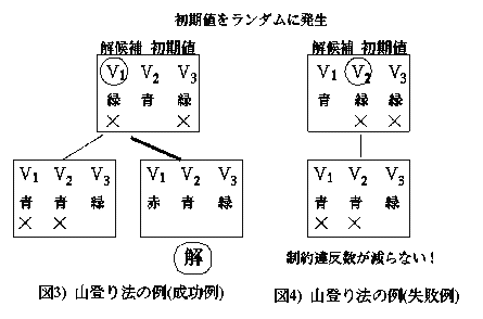 図4)のように探索が失敗することがある(局所最適解という)。