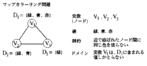 この問題は、各ノード(変数)に色(値)を割り当てる問題であるが、