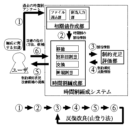 以下に、本研究で開発した時間割編成システムの処理の流れを図で示す。